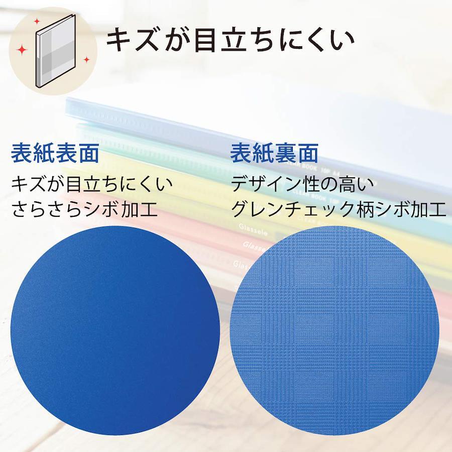 ●商品特徴【キズが目立ちにくい】表紙の表面にはキズが目立ちにくいさらさらシボ加工を、裏面にはデザイン性の高いグレンチェックの柄シボ加工を施しました。
