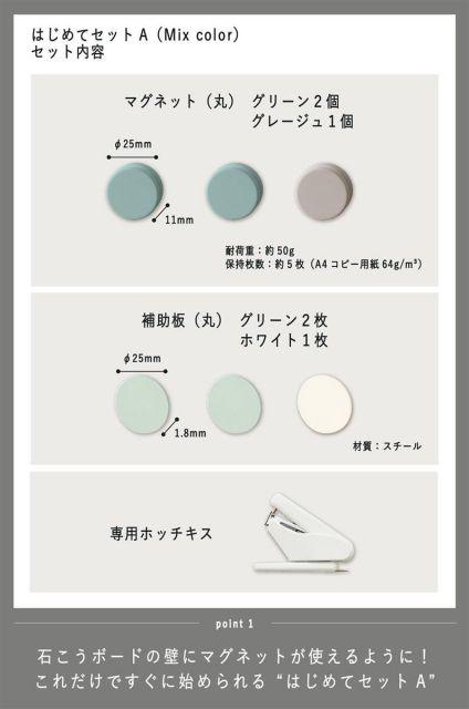 スタイル:はじめてセットA◆商品名:コクヨ壁につけるマグネットセットAカラーアソートマグネット丸3個補助板丸3枚専用ホッチキスLSW-MGPSETA-2