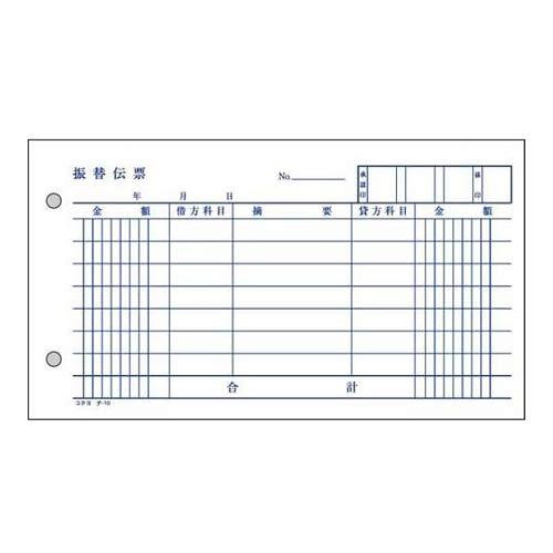コクヨ 振替伝票 別寸ヨコ型 100枚入×10冊 テ-10N