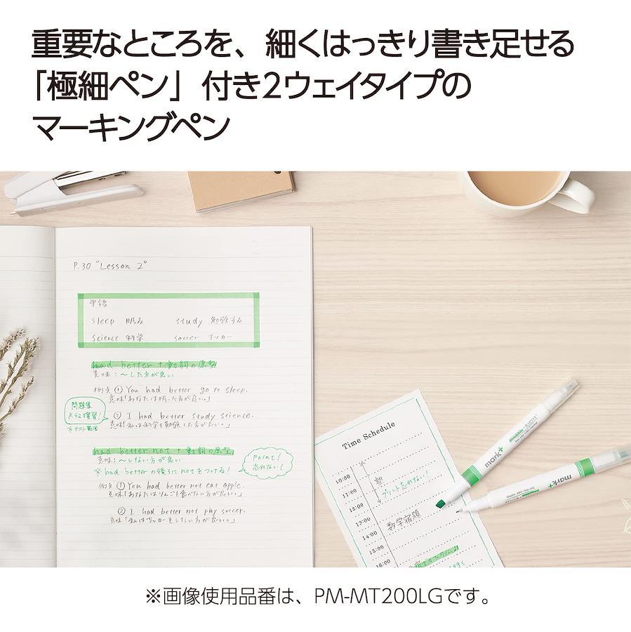 ・「めだたせカラー」はチカチカしにくいインク色を採用しているので、文字の上からのマーキングに適しており、「はっきりメモ」は濃いインク色の極細ペンで、重要な情報のメモに適しています。