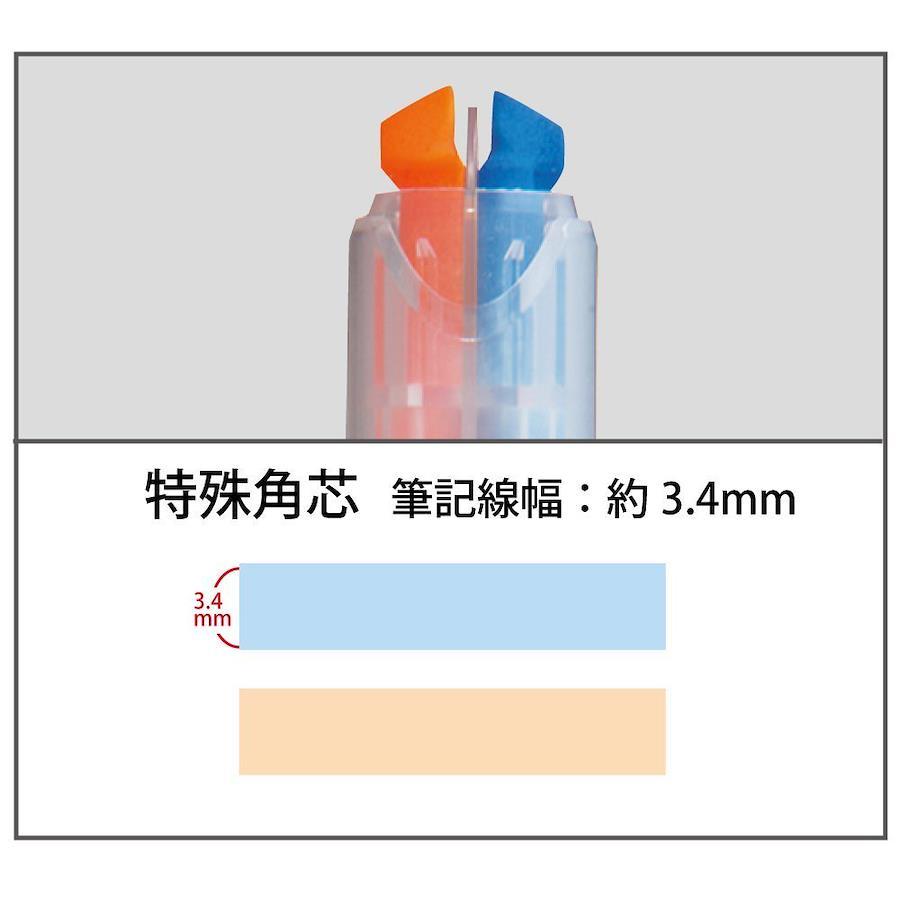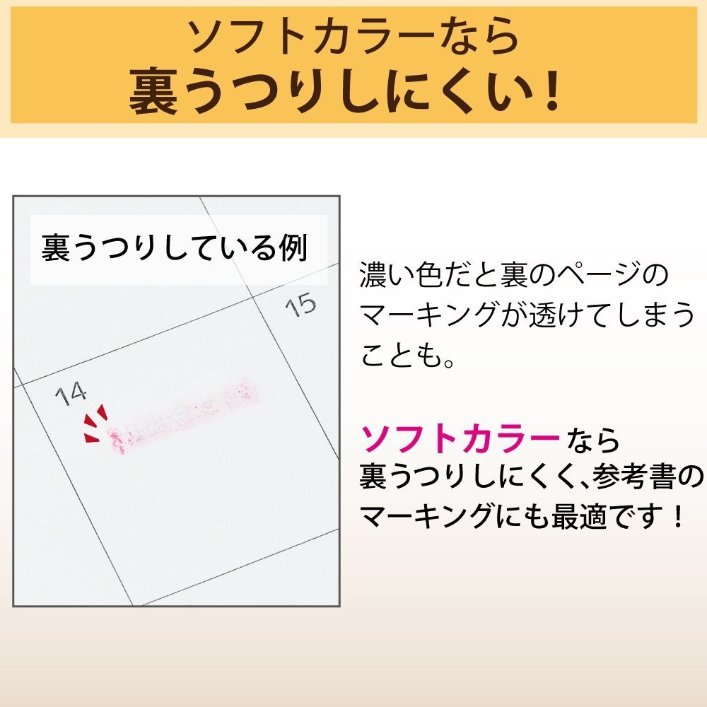 淡い色なので、たくさん引いたり、多色を使ってもうるさくない。裏うつりもしません。くるっと回すだけで色分けできます。2色で1本なので、複数の蛍光マーカーを持ち歩くときもかさばりません。