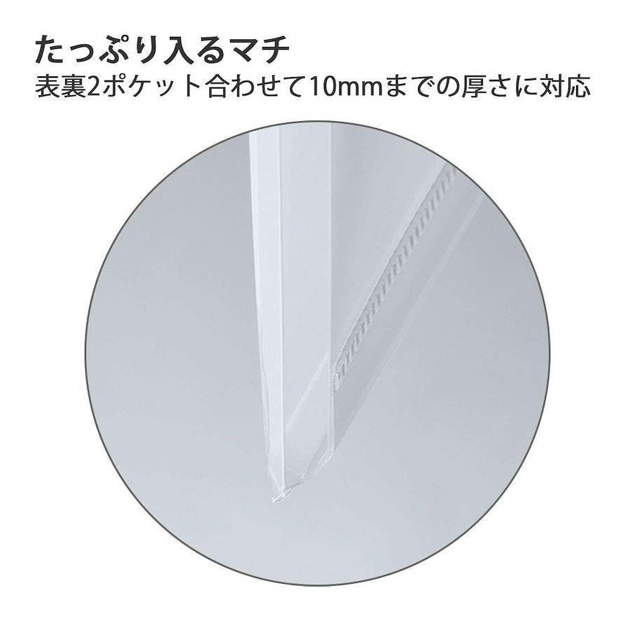 ・丈夫なマチ付きポケットで、厚手の冊子もしっかり収容できます。・取扱説明書を入れるメインのA4ポケットに加え、スリットポケットにより、取扱説明書と付属書類(保証書、CD など)をまとめて整理ができます。・付属のインデックス用ラベルをポケットに貼って使用すれば、検索しやすい見出しになります。