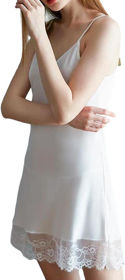 裾の部分にレースを使用しており、肩ひもは長さ調整可能です。