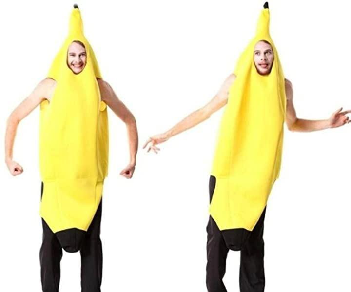 誰でも簡単に受けます。着るだけでバナナに大変身できるバナナのおもしろ衣装です。