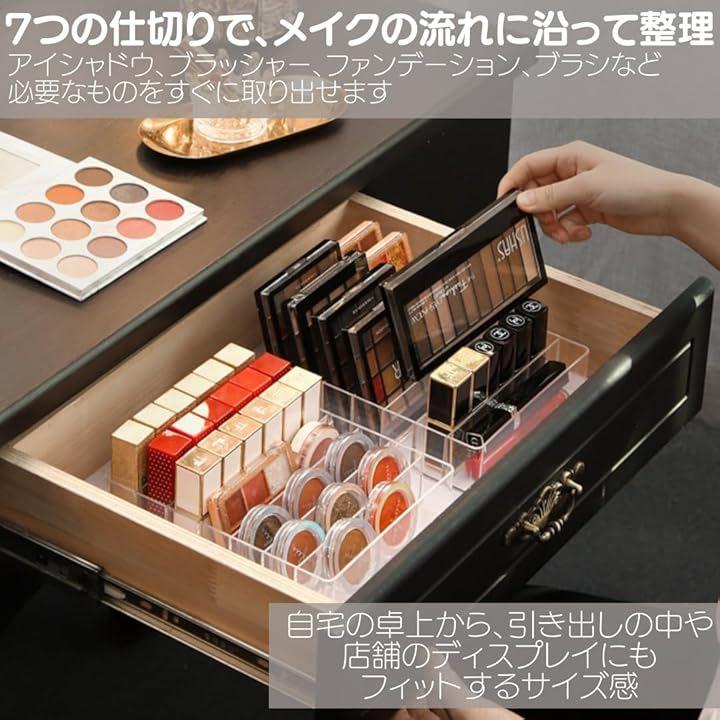 7つの仕切りは、メイクの流れに沿ってアイテムを整理。