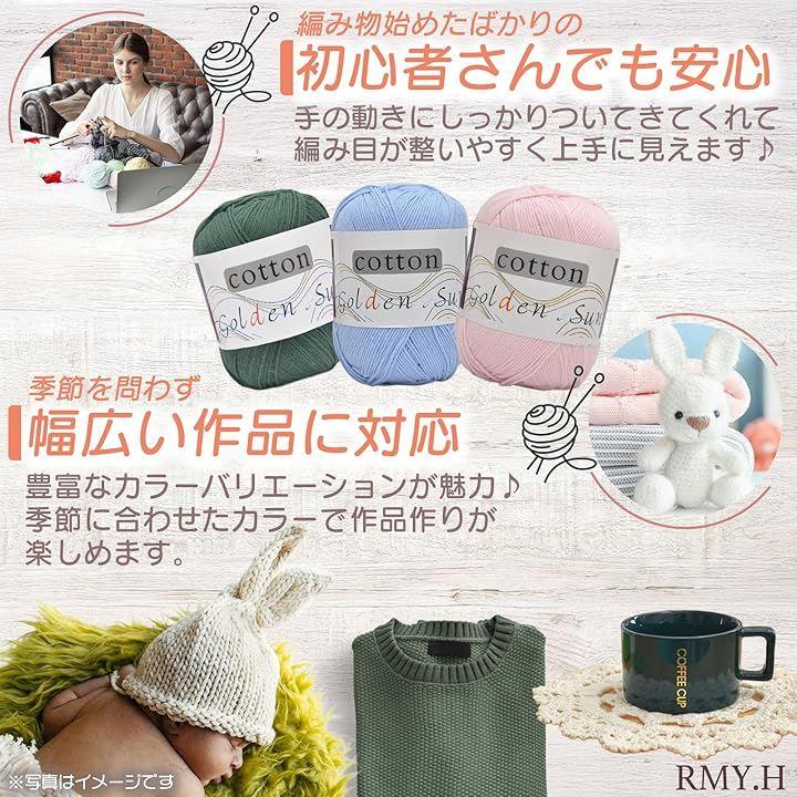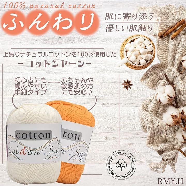 天然素材のコットン毛糸を使用した柔らかな毛糸で、編み物・刺しゅう・かぎ針編みなど幅広いハンドメイド作品に対応。
