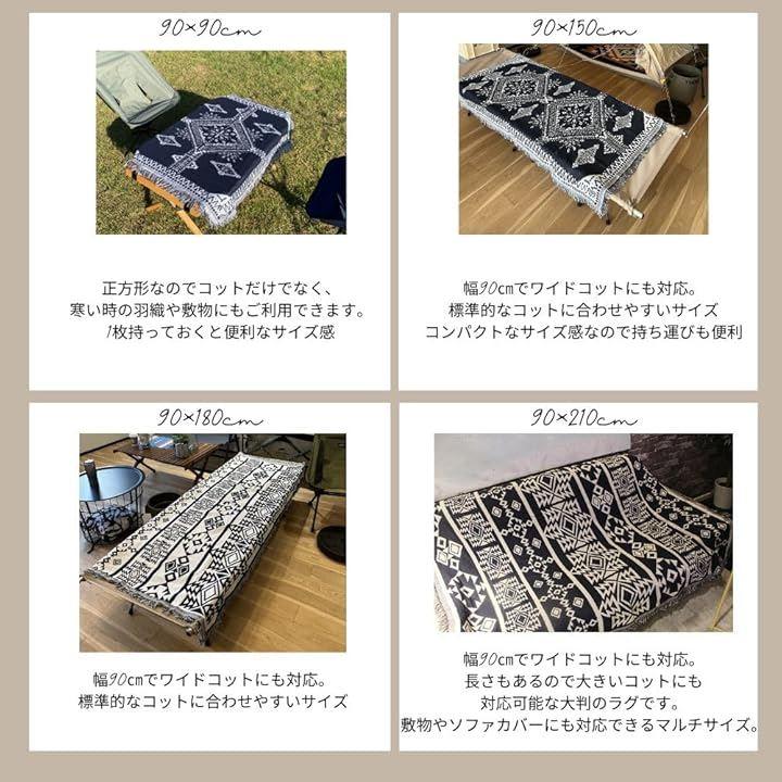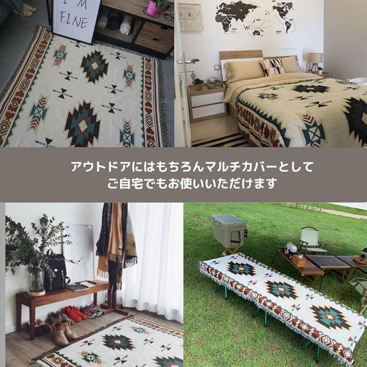 コット用ラグ キャンプ ラグマット アウトドア 民族柄 マルチカバー リバーシブル ブランケット