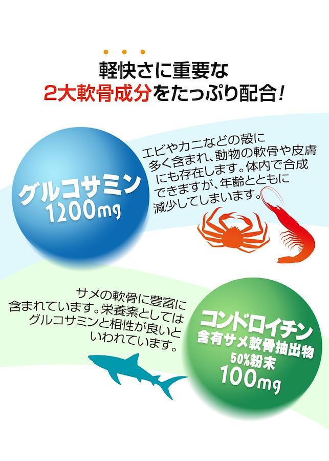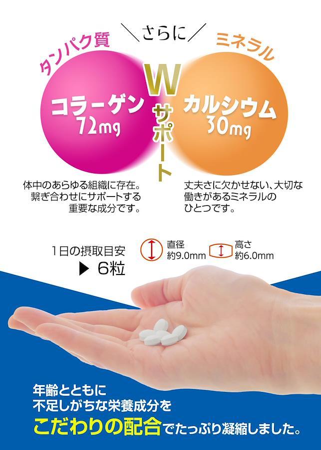■サイズ:??18x13.1x1.7cm;70g ?【グルコサミン 1200mg コンドロイチン 100mg 配合】グルコサミンはえび・かに由来の原料を使用しています。コンドロイチンはサメ軟骨由来の原料を使用しています。 ?【コラーゲン 72mg カルシウム 30mg 配合】コラーゲンは吸収されやすい低分子タイプを使用しています(豚由来)。カルシウムは骨の形成に必要な成分です(ホタテ由来)。 ?【弊社の商品が選ばれる理由】①1日目安量6粒で小粒 ②表面をコーティングしているので飲みやすい ③不足しがちなカルシウムも配合 ?【安心安全の国内製造】GMP認定工場で製造されています。 ?【サプリの飲み方】1日6粒を目安に水などといっしょにお召し上がり下さい。 ■重要なお知らせ安全上のお知らせ妊娠・授乳中の方、小児のご利用はお控え下さい。原材料・成分還元麦芽糖水飴、デキストリン、豚コラーゲンペプチド(ゼラチンを含む)、コンドロイチン含有サメ軟骨抽出物/グルコサミン(えび・かに由来)、セルロース、貝カルシウム、ステアリン酸カルシウム、微粒酸化ケイ素、光沢剤、ヒドロキシプロピルセルロース使用方法水などといっしょに召しあがってください