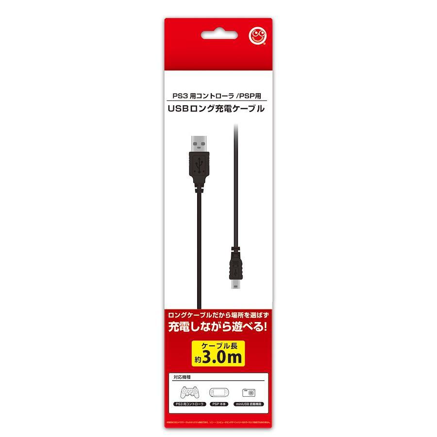 「PS3用コントローラ」・「PSP本体」・「WiiU PROコントローラ」に対応した充電ケーブル! 使いやすい3mのロングケーブル! !【USB接続でコントローラの充電が可能! 充電しながら遊びやすい3m! 】本製品「USBロング充電ケーブル (PS3用コントローラ/PSP用) 」は、USB接続でPS3用コントローラを充電できるケーブルとなります。ケーブル長は3mのロングケーブルなので、コントローラを充電しながら快適にゲームが遊ぶことが出来ます。 本製品は「PS3用コントローラ」の他、「PSP本体」、「WiiU PROコントローラ」の充電も出来る汎用性の高い充電ケーブルです。また、突然の断線等の予備にも重宝するケーブルです。【対応機種】・PS3用コントローラ ・PSP本体 (*PSP-1000は本体の仕様により充電できません。) ・WiiU PROコントローラ【詳細】【ケーブル長:3M】・【USB端子:USB-Aタイプ (オス) ←→Mini-Bタイプ (オス) 】【ご注意】*PSPgo本体には対応しません。*本製品はコロンバスサークルのオリジナル製品であり、各社のライセンス製品ではありません。*記載されている名称または商品名は各社の商標または登録商標です。*画面は開発中のものです。本製品の仕様、形状、色は改良のため予告なく変更する場合があります。型番 : CC-MLULC-BK PS3用コントローラの充電ができるUSBケーブルです。コントローラを接続したままゲームプレイが可能なので、バッテリー切れの心配がありません。 PSP本体の充電や、データ転送が出来るUSBケーブルです。 トルネを使用し、PS3本体に録画した地上デジタル放送をPSP本体に転送するケーブルとしても便利です。 USB2.0に準拠し、最大データ転送速度480Mbpsを実現します。 WiiU PROコントローラの充電が可能です。