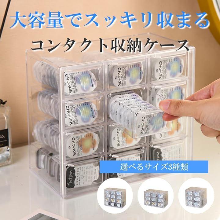 「コンタクトケースでスッキリ収納」 コンタクトケース 収納ケースは12グリッド・6グリッド・9グリッドが選べる引き出しボックス仕様で、コンタクトレンズやカラコンをすっきり整理できるため、卓上でも引き出しの中でもスペースを有効に活用しながら保管できます。