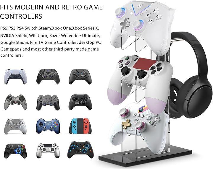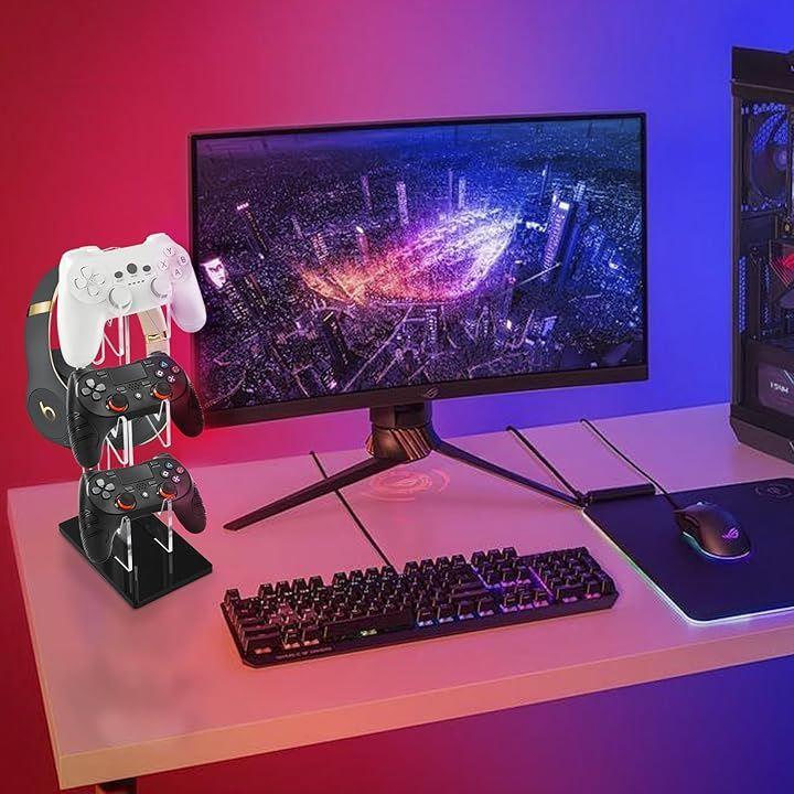 「高品質アクリル」このコントローラースタンドは高品質のアクリル製で、透明で頑丈、コントローラーの外観を向上させ、すべてのコントローラーを表示するための優れた方法でもあります。