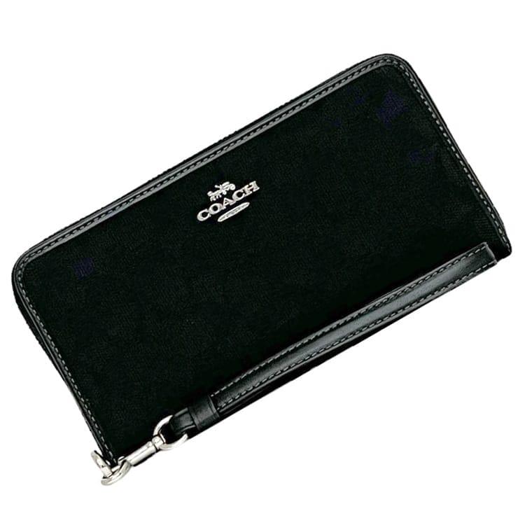 ☆---- 商品について ----☆コーチ ラウンドファスナー 長財布 f-24214 ブラック シグネチャー CU150 未使用 美品 財布 キャンバス レザー Sランク COACH ロゴ 総柄 ストラップ プレゼント ギフト 贈り物 誕生日 記念日 シンプル 小物 お洒落 黒色 黒 高級感 上品 ブランド 本物 鑑定済み