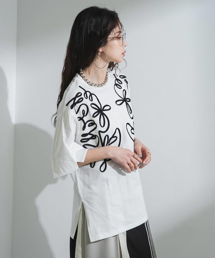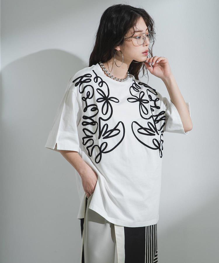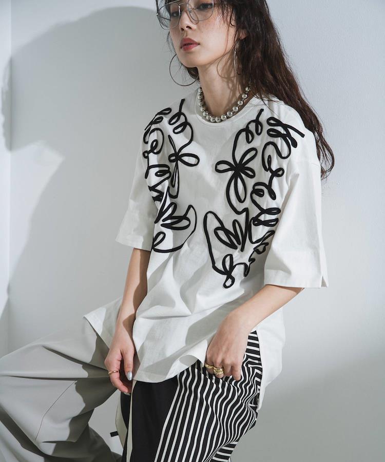 大胆なコード刺繍がアクセント