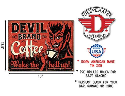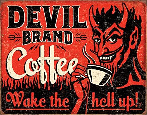 「デビルブランド・コーヒー」言ってみると「悪魔のコーヒー」(笑)。別に毒が入っていたりとか、まずいとかの意味ではなく、「悪魔がさっそているように癖になる」って意味合いが強いそんな看板です★「BRAND」のロゴのところに、悪魔が持っているような武器もデザインされていて、ちょっとポップなイメージも♪★「起きやがれ!!」ってキャッチフレーズも口の悪い悪魔っぽくてGOOD!!★こんな看板だとインパクトも大で、お部屋をユニークに演出できちゃいそうですよね★あなたのお部屋に飾ってみませんか!?