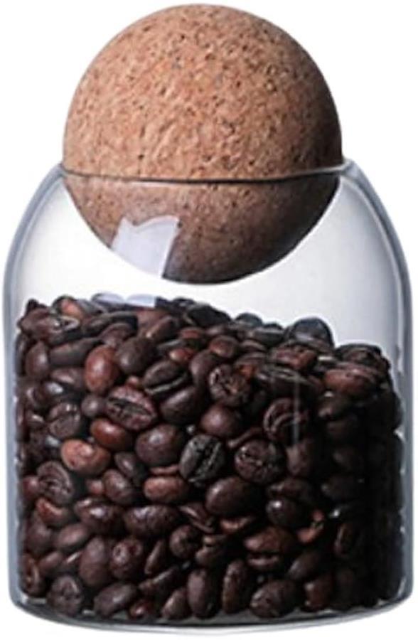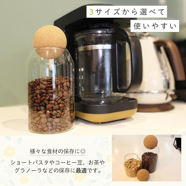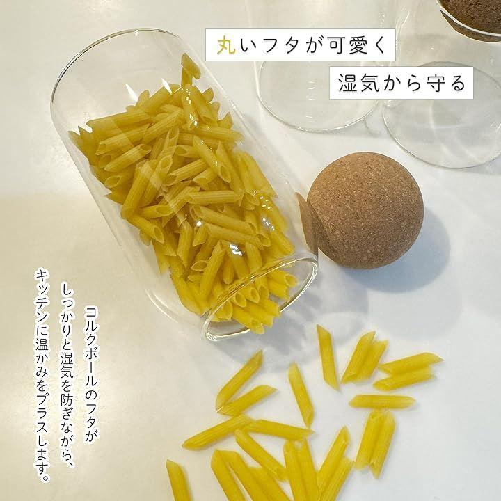 「気密性の高い安心設計」 丸いコルクボールのフタが湿気を防ぎ、食品の鮮度を長く保ちます。