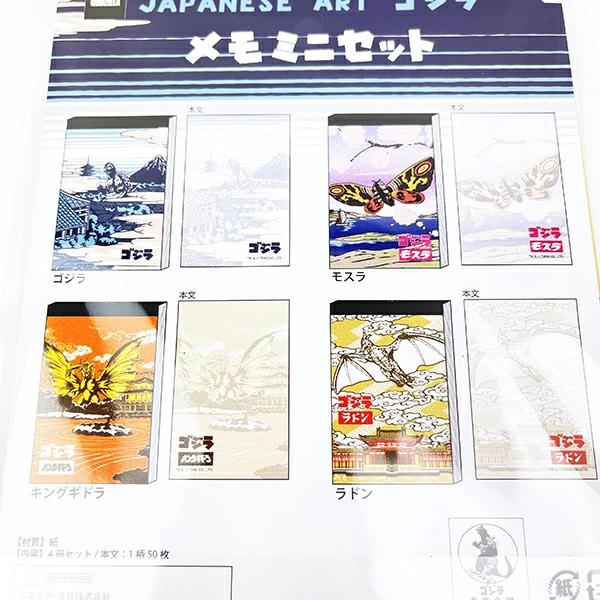 ちょっとしたメモやメッセージにちょうどいいゴジラのメモミニセットです。Japaneseデザインなので海外にお住まいのお友達などのプレゼントにぴったり☆4柄あるのでゴジラ好きの方はぜひお手に取ってみてください♪