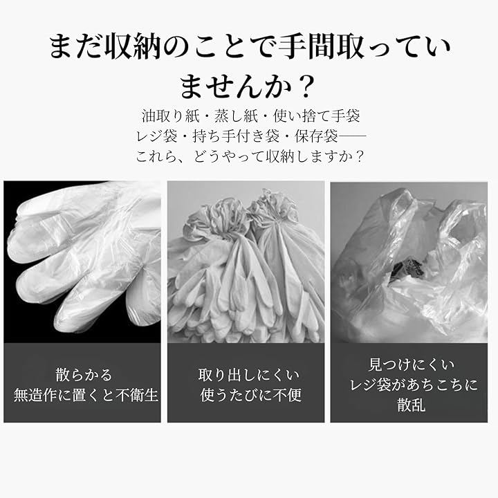 ビニール袋のほか、排水ネット、ペーパー類、使い捨て手袋などにも対応。