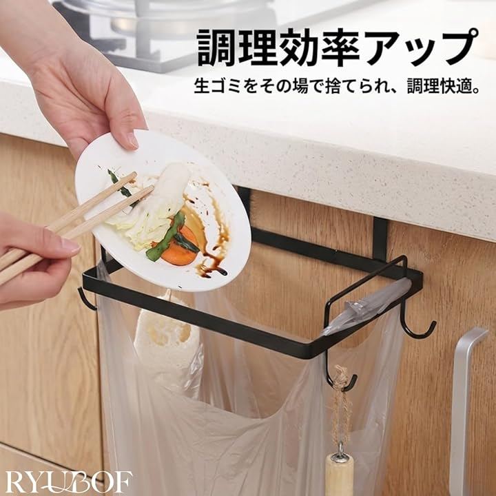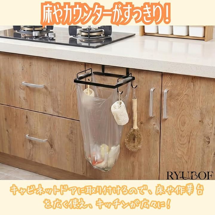 ゴミ袋ホルダー キッチン キャビネット ドア 取り付け簡単 工具不要 省スペース ごみ袋掛け 多用途 ごみ袋スタンド レジ袋ホルダー ごみ箱代用 整理収納
