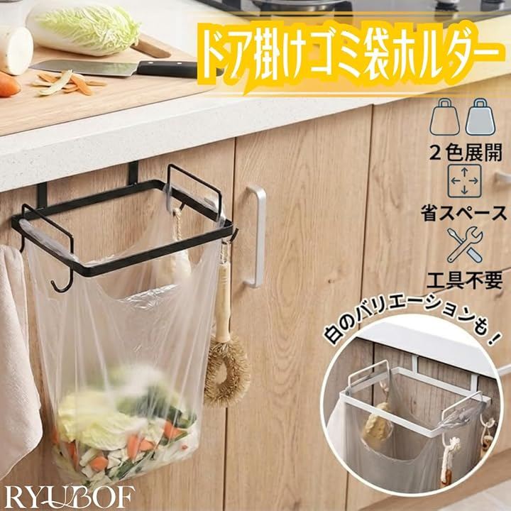 キッチンキャビネットドア用ゴミ袋ホルダーは、工具を使わずに簡単に取り付けられる便利な収納アイテムです。