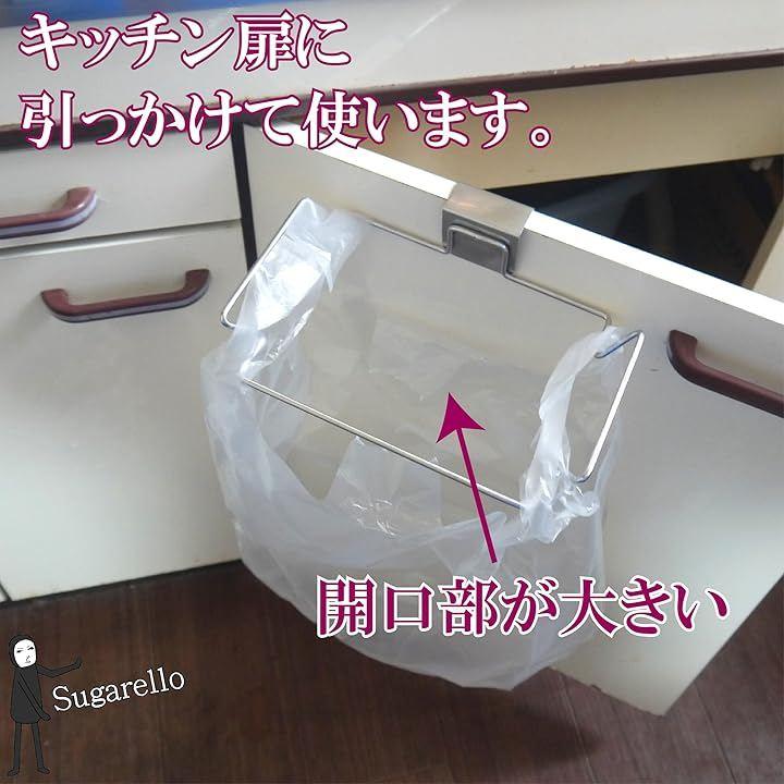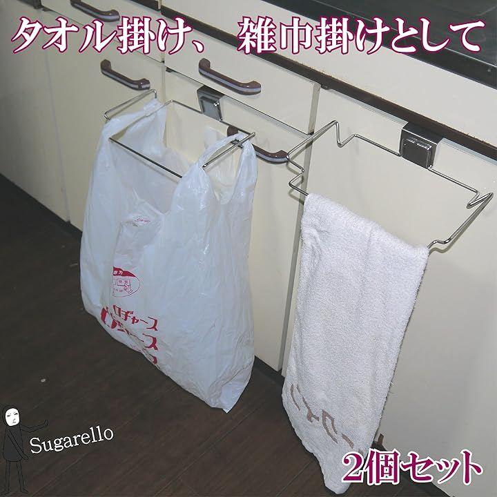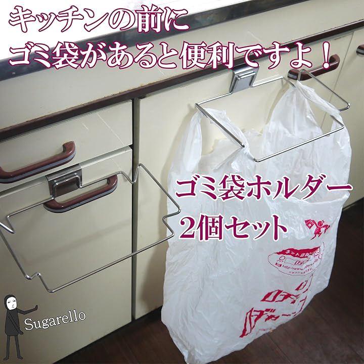 キッチンのすぐ前にゴミ袋があると便利ですよ。キッチン扉に引っかけて使うタイプのステンレス製ゴミ袋ホルダー、2個セットです。