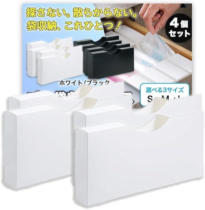 「商品内容」 ゴミ袋収納ケース(4個セット) 材質:ポリプロピレン カラー:ホワイト/ブラック Sサイズ:幅/約20cm 奥行き/約3cm 高さ/約12cm 取り出し口サイズ横/約6.8cm 縦/約2.5cm Mサイズ:幅/約26cm 奥行き/約3cm 高さ/約12cm 取り出し口サイズ横/約6.8cm 縦/約2.5cm Lサイズ:幅/約28cm 奥行き/約3cm 高さ/約12cm 取り出し口サイズ横/約6.8cm 縦/約2.5cm *説明書は付属しません(組み立てについては商品ページ動画をご参照ください)