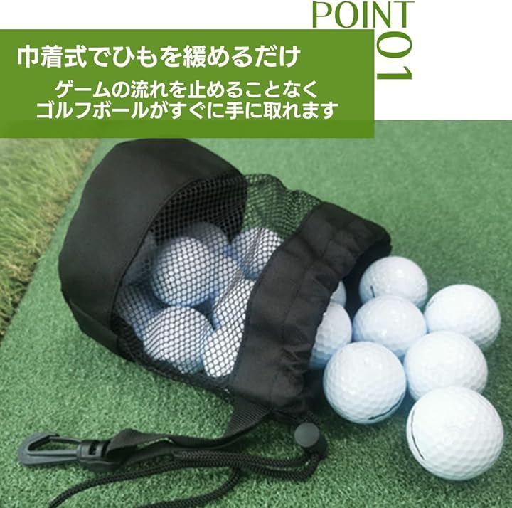 「ゴルフラウンドをスマートに」最大20個のゴルフボールを収納でき、巾着タイプで取り出しもスムーズ。