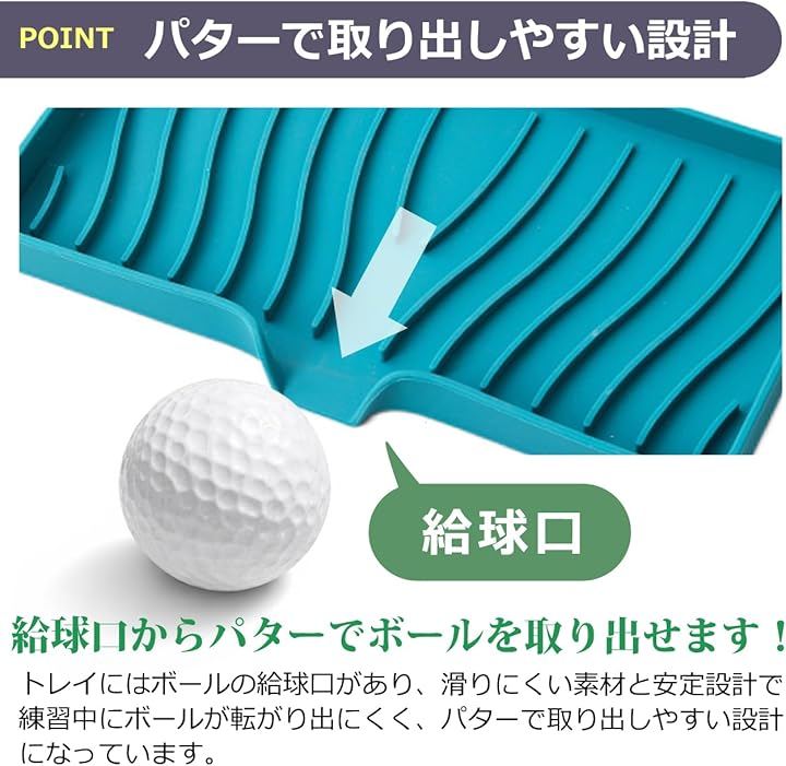 トレイにはボールの給球口があり、パターで取り出しやすい設計になっているので、勝手にボールが転がってでてくることはありません。