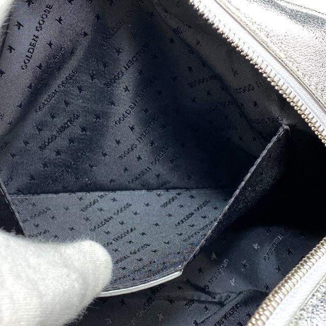 【ブランド】 GOLDEN GOOSE ゴールデングース【商品名】WRINKLED LAMB LEATHER グリッター クロスボディバッグ【商品番号】 -【カラー】 メタリック シルバー【サイズ】 横:22cm 縦:14cm 奥行:8cm ストラップの長さ:最長で約115cm(接続金具含みます):調節可能ボタンホールが約4.5cmおきに5つ【素材】 レザー【付属品】 ショルダーストラップ【ランク】 ABランク【コメント】 外面:角スレ/薄スレ(小) 中面:薄スレ(小)【管理番号】1014b4989o商品情報