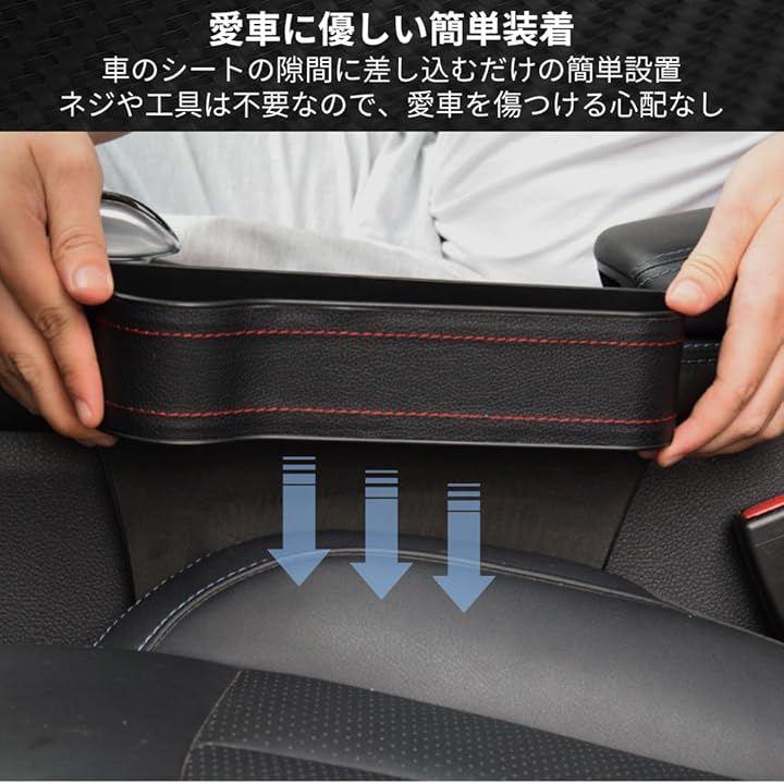 「商品詳細」セット内容:運転席側・助手席側2個セット サイズ(約):26cm x 7.5cm x 16.4cm、素材:ABS、PUレザー *本品はシートとセンターコンソールの隙間1.8cm~3.5cmに対応。