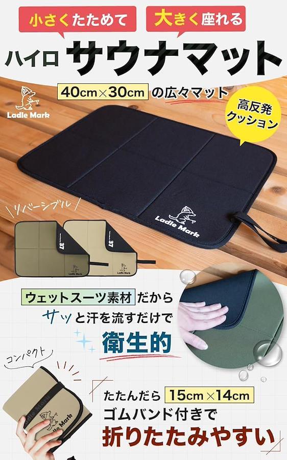 「サウナ・スパ健康アドバイザー監修」 座り心地を追求したサウナマット登場。 サウナブランド Ladle Mark が、サウナ好きのスタッフと サウナスパ健康アドバイザー「いさきとさとしの大浴場」 と共に開発した、サウナーのための サウナマット です。