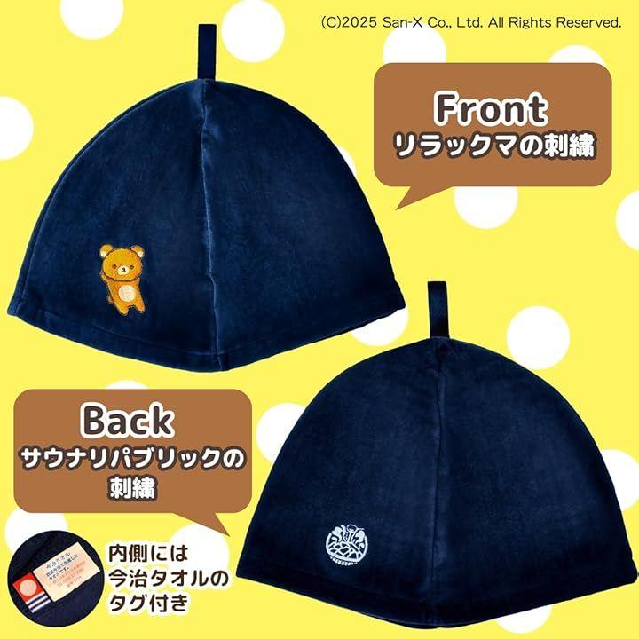 今治タオルのサウナハット リラックマ(ネイビー)とチャイロイコグマ(ブラック)はシャーリング地 コリラックマ(パープル)とキイロイトリ(カーキ)はパイル地 (C)2025 San-X Co., Ltd. All Rights Reserved.