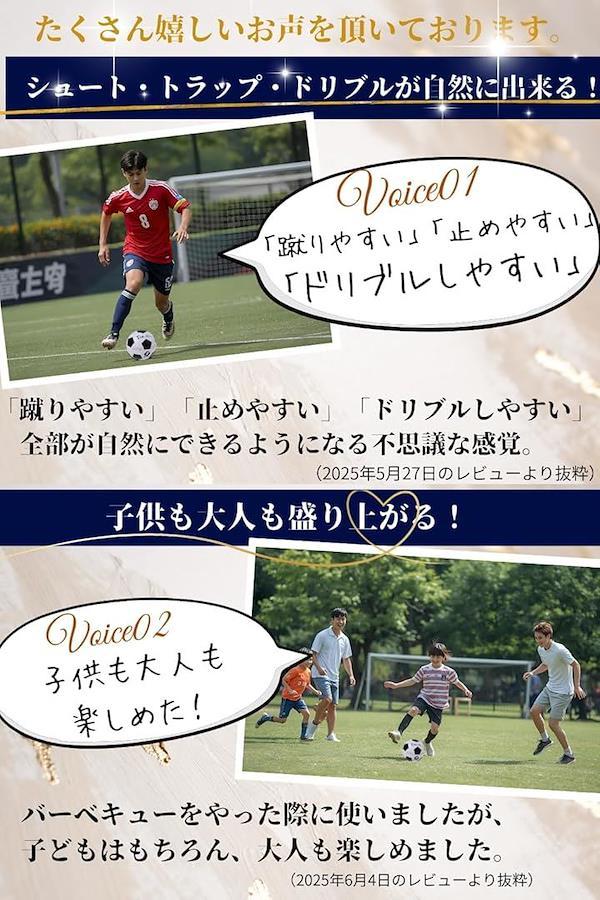 Point01 シュートもパスも快適に。思い通りに蹴れる高弾性。 ブチル内部構造で高弾性が高く、シュートやロングパスが蹴りやすく子供も楽しく上達。 こだわりの高品質PU素材採用。