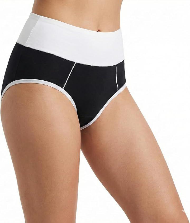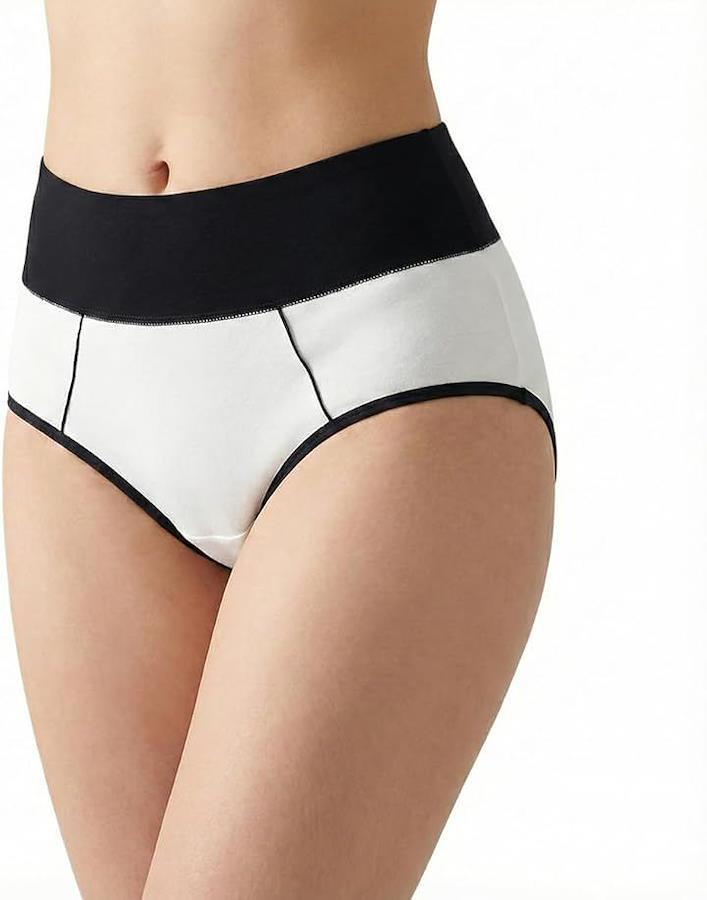 お腹を優しく包み込むハイウエスト設計のサニタリーショーツ。