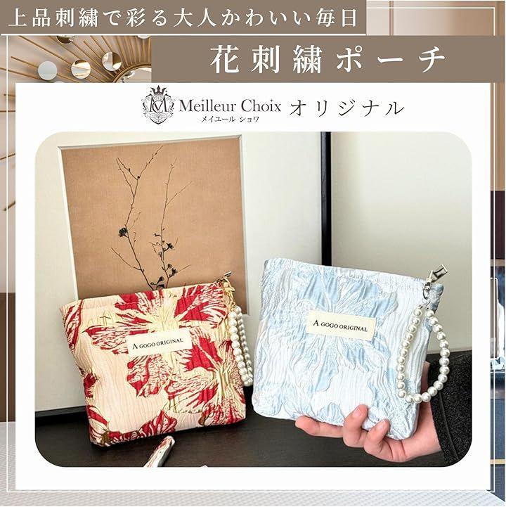上品な花柄刺繍が目を引く、大人かわいい化粧ポーチです。
