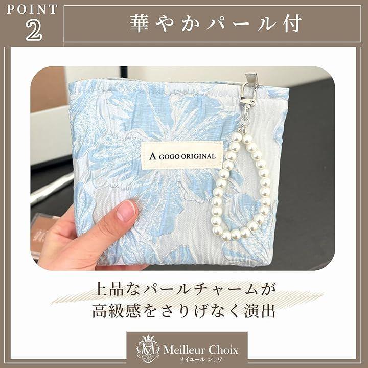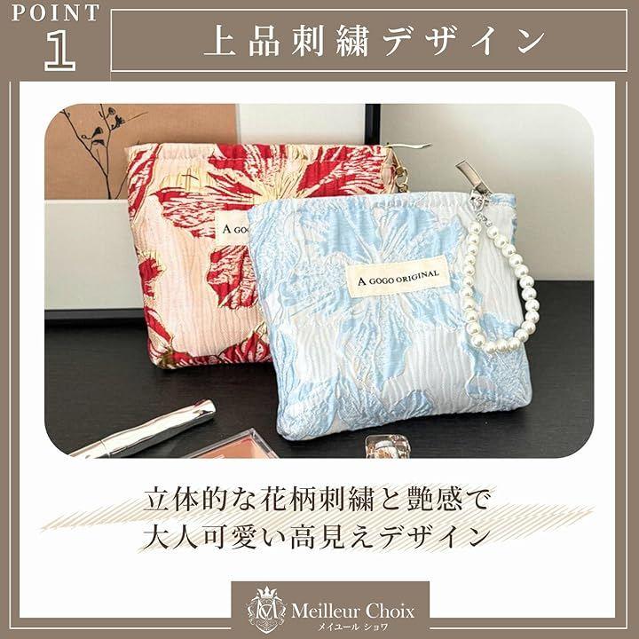 「上品刺繍デザイン」 立体感のあるジャガード織の花柄刺繍が目を引く、上品さと大人の可愛らしさを兼ね備えた化粧ポーチ。