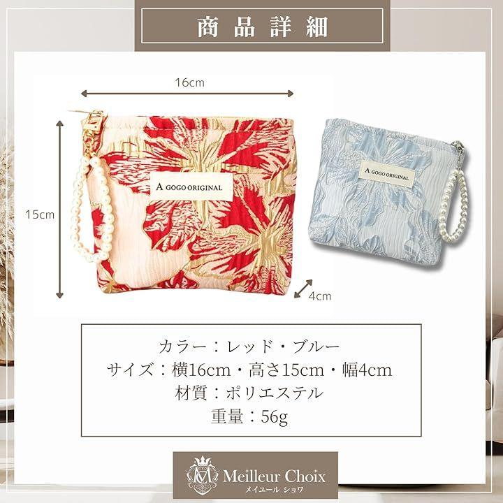 「商品詳細」 カラー:レッド、ブルー サイズ:横16cm、高さ15cm、幅4cm 材質:ポリエステル 重量:56g