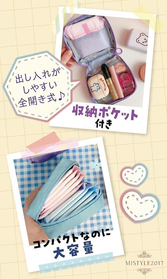 サイズ約13cmx13cm生理用ナプキン8個挿入可能)。