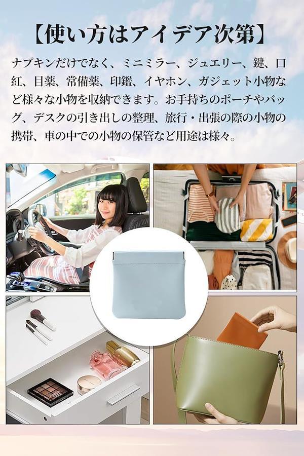 「多彩な用途」ナプキンポーチだけでなく、ミニミラー、ジュエリー、鍵、口紅、目薬、常備薬、印鑑、コイン、各種カードなど様々な小物を収納できます。