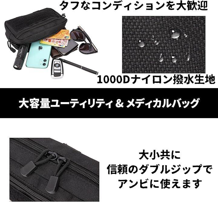 スムーズに必要なツールを確認、取り出すことを可能にするタブやダブルジッパーでアンビ仕様でコンパクト大容量なタクティカルポーチです