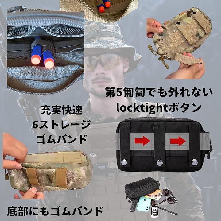 モールシステムでサバゲーのサスペンダーやプレートキャリア 弾帯に アウトドア キャンプのベルトポーチ や職人さんの腰ベルトに装着し易いミリタリーなタクティカルポーチ edcダンプポーチです