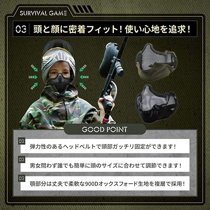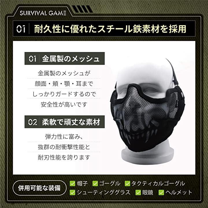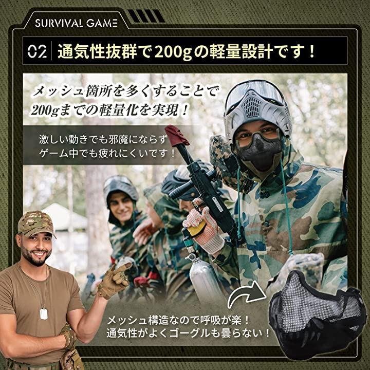 ・(1)頑丈なスチールメッシュ素材を採用したサバゲー マスク フェイスガードです。