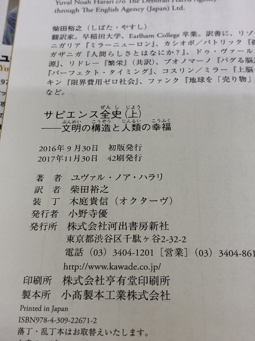 ■商品詳細■ 商品名・サピエンス全史(上)文明の構造と人類の幸福 河出書房新社 ユヴァル・ノア・ハラリ/ ■商品状態■表紙にスレ、ヤケ、シミ、天地小口にスレ、ヤケ、シミ、本にスレ、ヤケ、シミ、があります。本を読むことに支障はございません。※注意事項※■毎商品チェック後出品しておりますが、中古品ということもあり、多少の書き込み等のチェック漏れがあった際はご容赦下さい。■付録等の付属品がある商品の場合、記載されていない物は『付属なし』とご理解下さい。■併売販売をしているため、在庫切れの場合はキャンセルとなります。予めご了承ください。