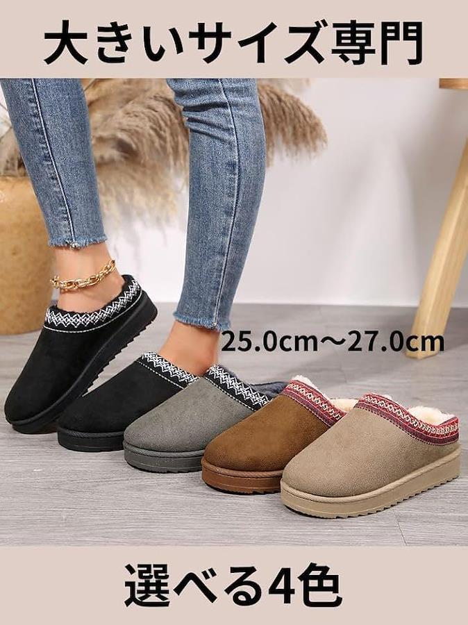 「サイズ選びの目安」ボアがしっかり入っているため、靴下の厚さも考慮すると、通常より0.5~1cm上のサイズをお勧めいたします。