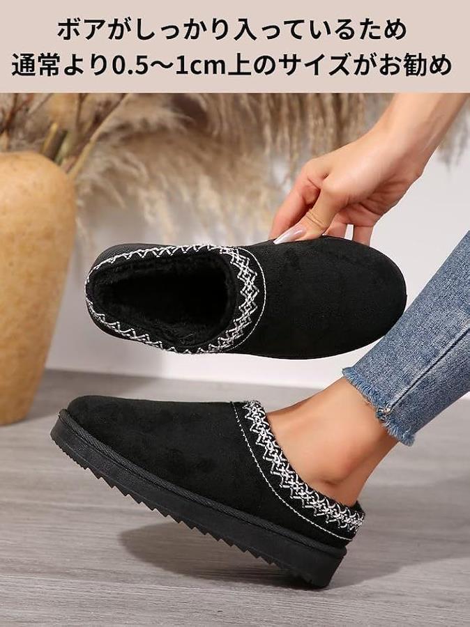 「サイズ選びの目安」ボアがしっかり入っているため、靴下の厚さも考慮すると、通常より0.5~1cm上のサイズをお勧めいたします。