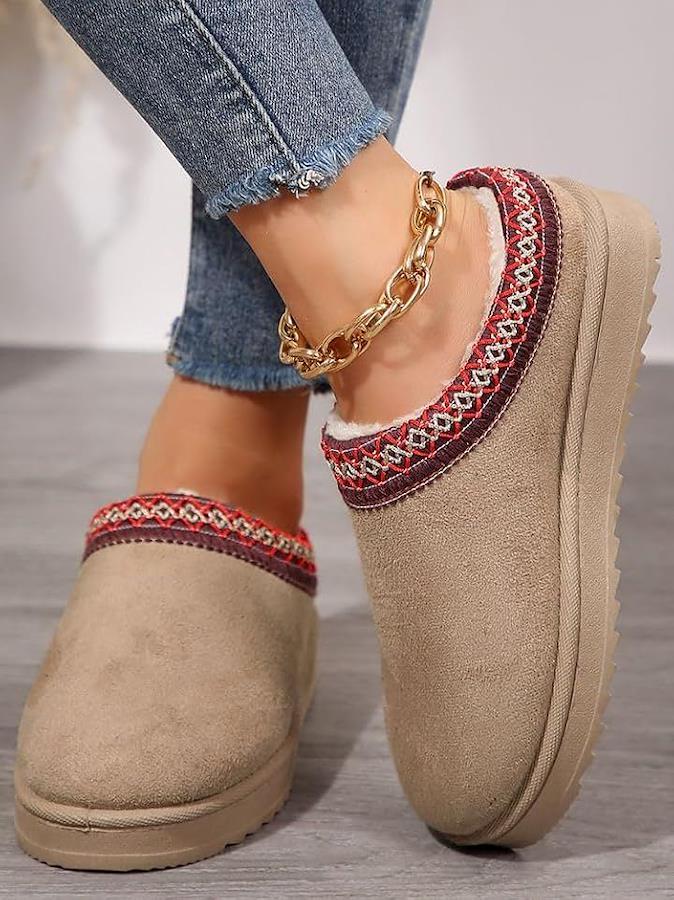 履き口には北欧テイストの刺繍をあしらい、冬のインテリアにもなじむデザインです。
