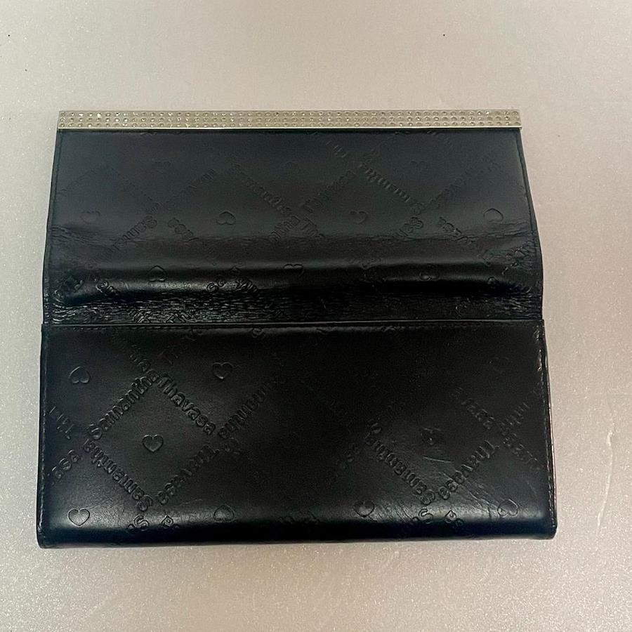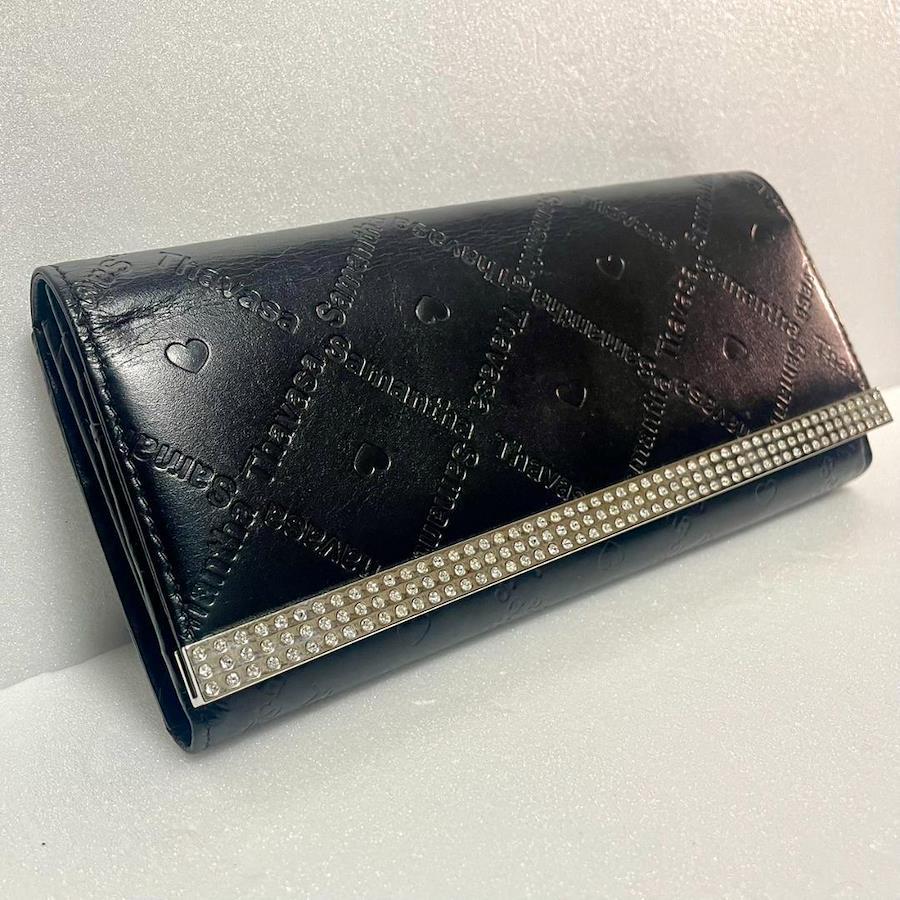 サマンサタバサ 長財布 ラインストーン型押しロゴ ブラック レディース