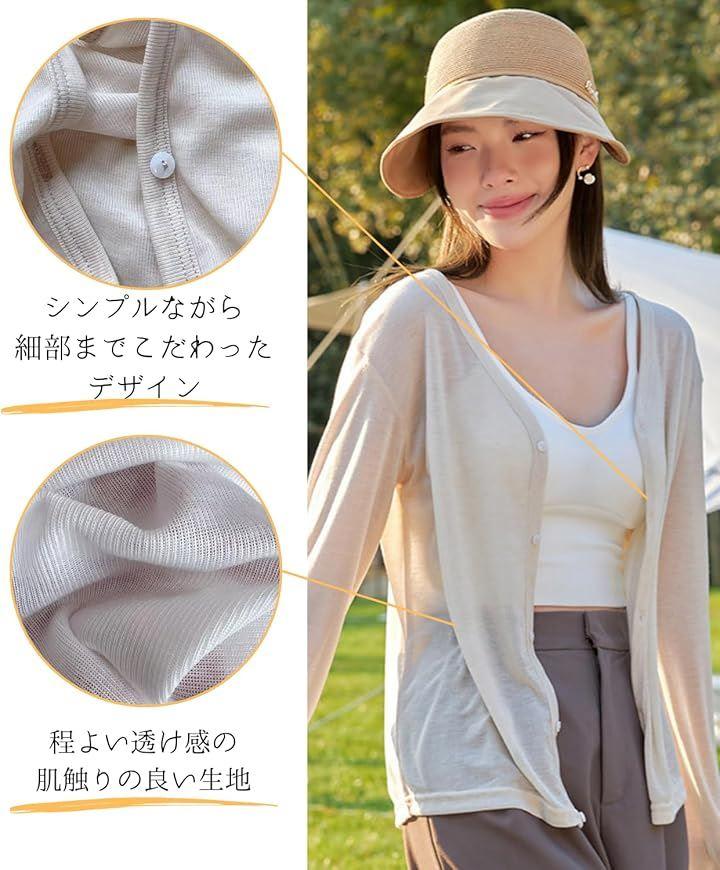夏用カーディガンとして幅広いシーンにマッチするuvカットカーディガンです。
