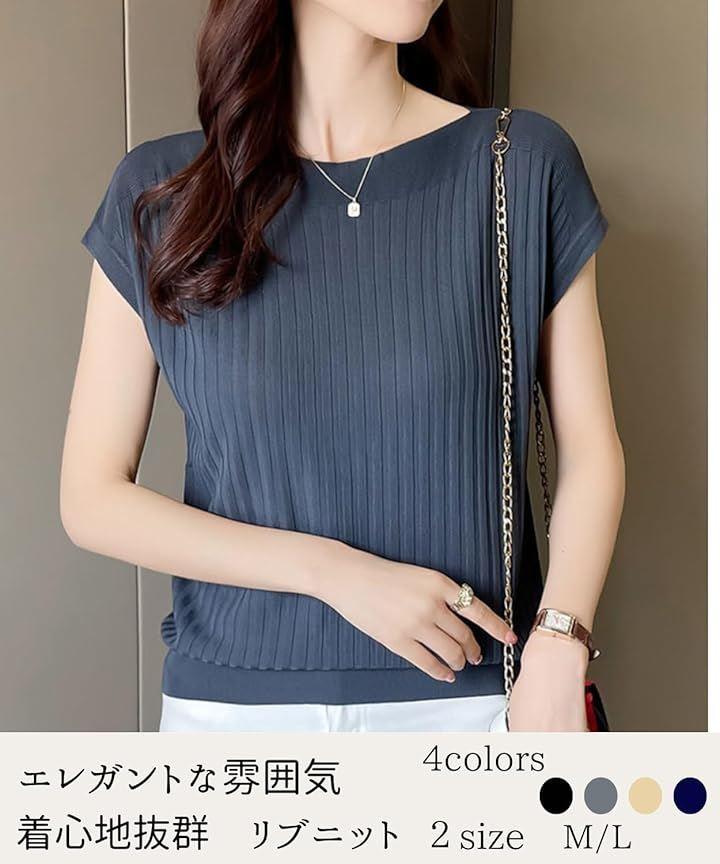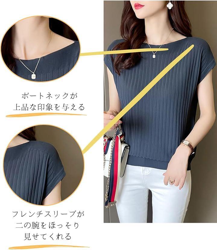 「概要」「サマーニット レディース 半袖」は、薄手で通気性が良く、夏でも快適に着られるフレンチスリーブのトップス。
