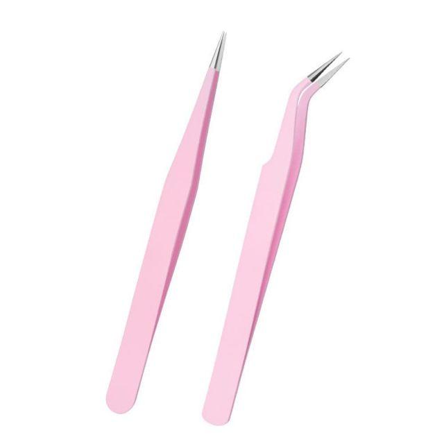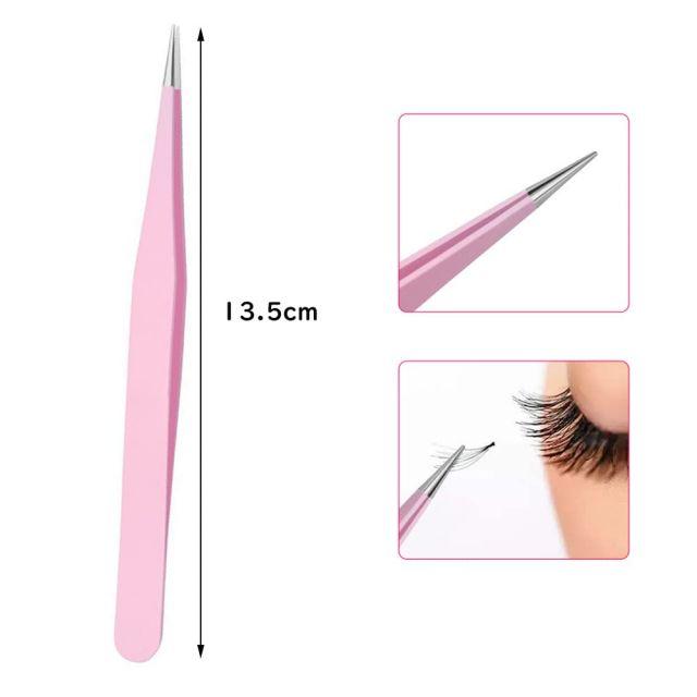 カラー:ピンク◆商品名:サムコスまつエクつけまつげピンセットまつ毛ピンセットピンクストレートステンレス細かい作業つけまつ毛睫毛2種類セット