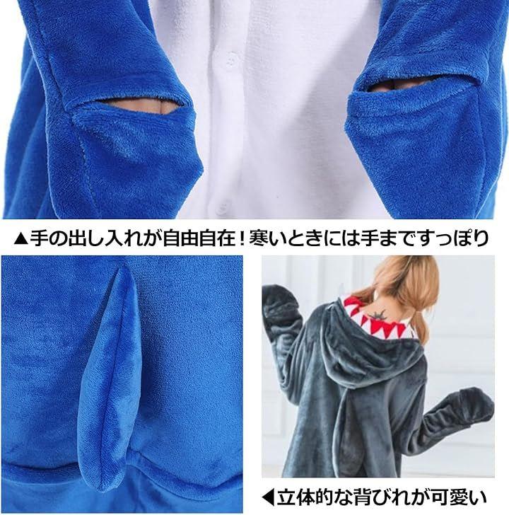 サメ着ぐるみ、大人用、ブルー、グレー 「推奨年齢」14才以上 * スリッパは、セット内容に含まれておりません。